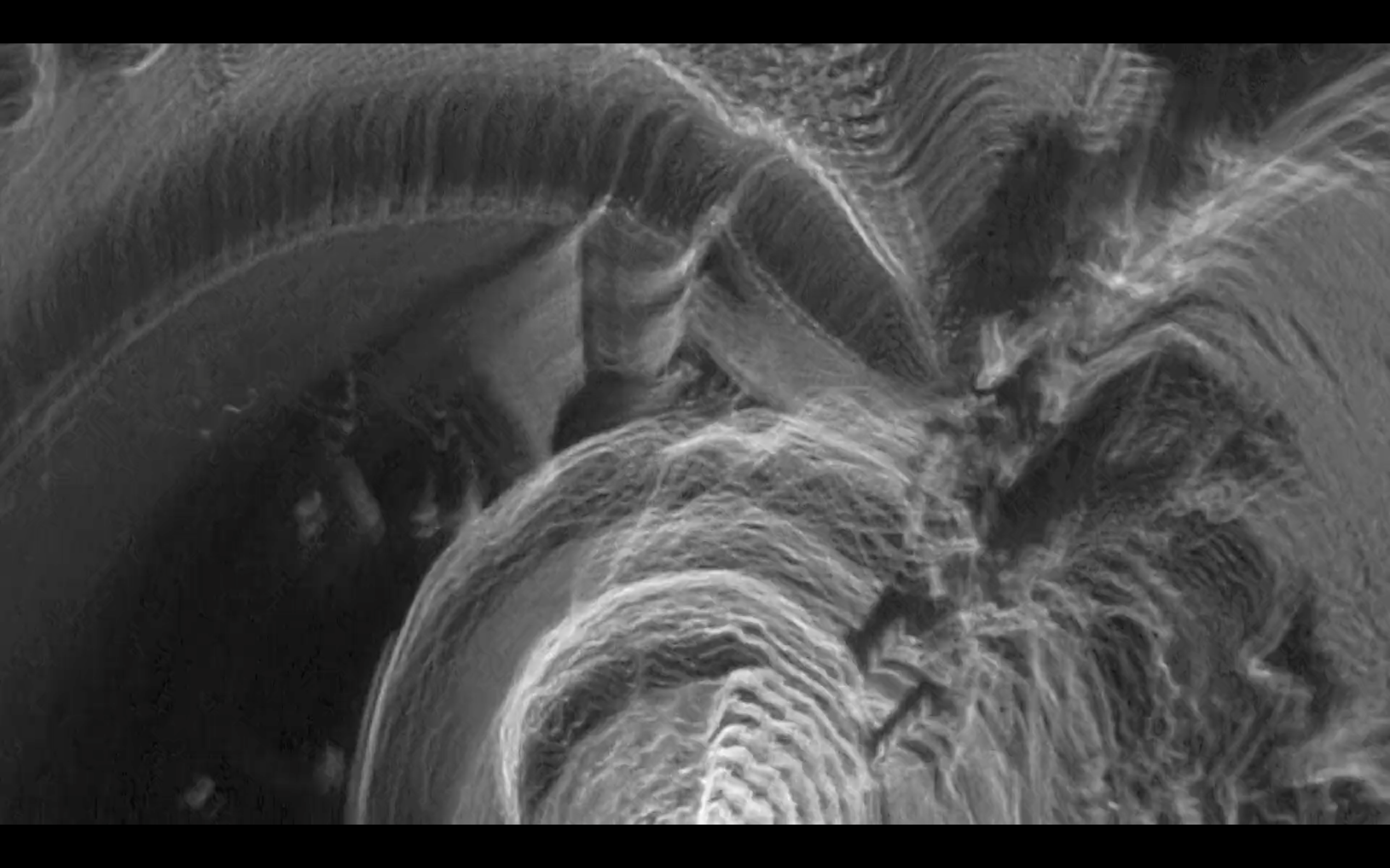 In #67, we witness a stroll through the electromagnetic worlds of machines and men, a world with a tonal coherence that humans rarely perceive. The result is similar to operating within an alien mode of perception, at once visceral in quite a human way, while also preserving something of its real world referents in a manner that allows us to connect and participate in the image. #67 was conceived as a tribute to ‘Reminiscence’ and ‘Telc’, two videoworks made by Steina and Woody Vasulka in 1974.